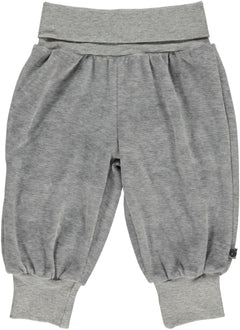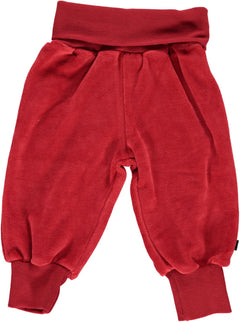 Velour Baby waistband pants. The pants has a wide comfortable rib at the waist and by the foot.