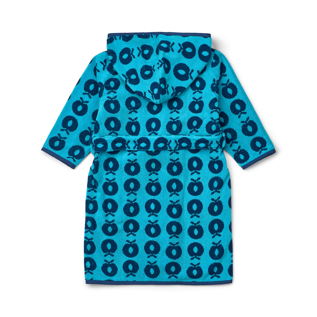 Terry bathrobe with apple print made from 100% organic cotton.