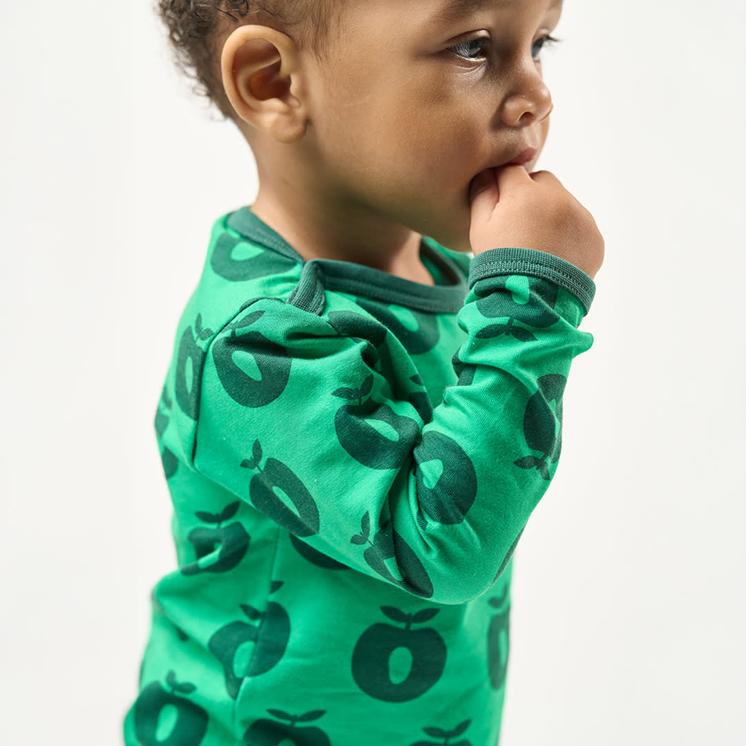 The iconic apple print embodies Småfolk’s playful origins and adds a touch of charm to any outfit. Småfolk's prints are designed with a focus on happy colors, details and stories. Our bodysuits are a great way to add personality to your child's wardrobe while keeping your child comfortable all day.