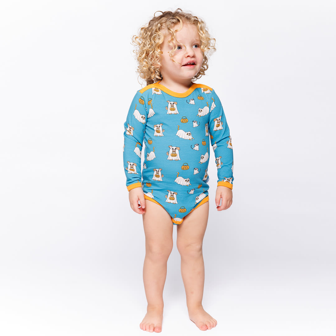 Get ready for a spook-tacular Halloween with our adorable pet print, featuring cute critters dressed up for trick-or-treating. Småfolk's prints are designed with a focus on happy colors, details and stories. Our bodysuits are a great way to add personality to your child's wardrobe while keeping your child comfortable all day.