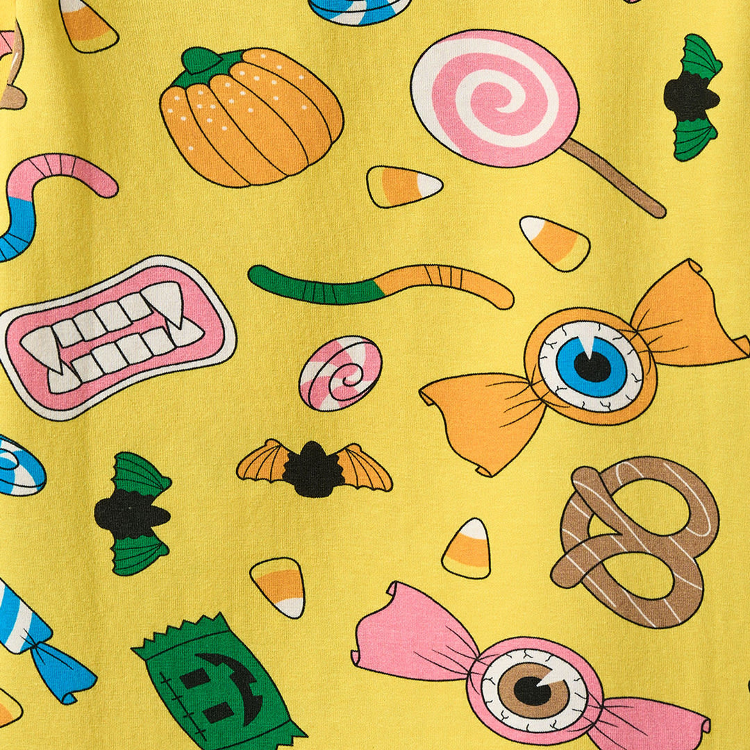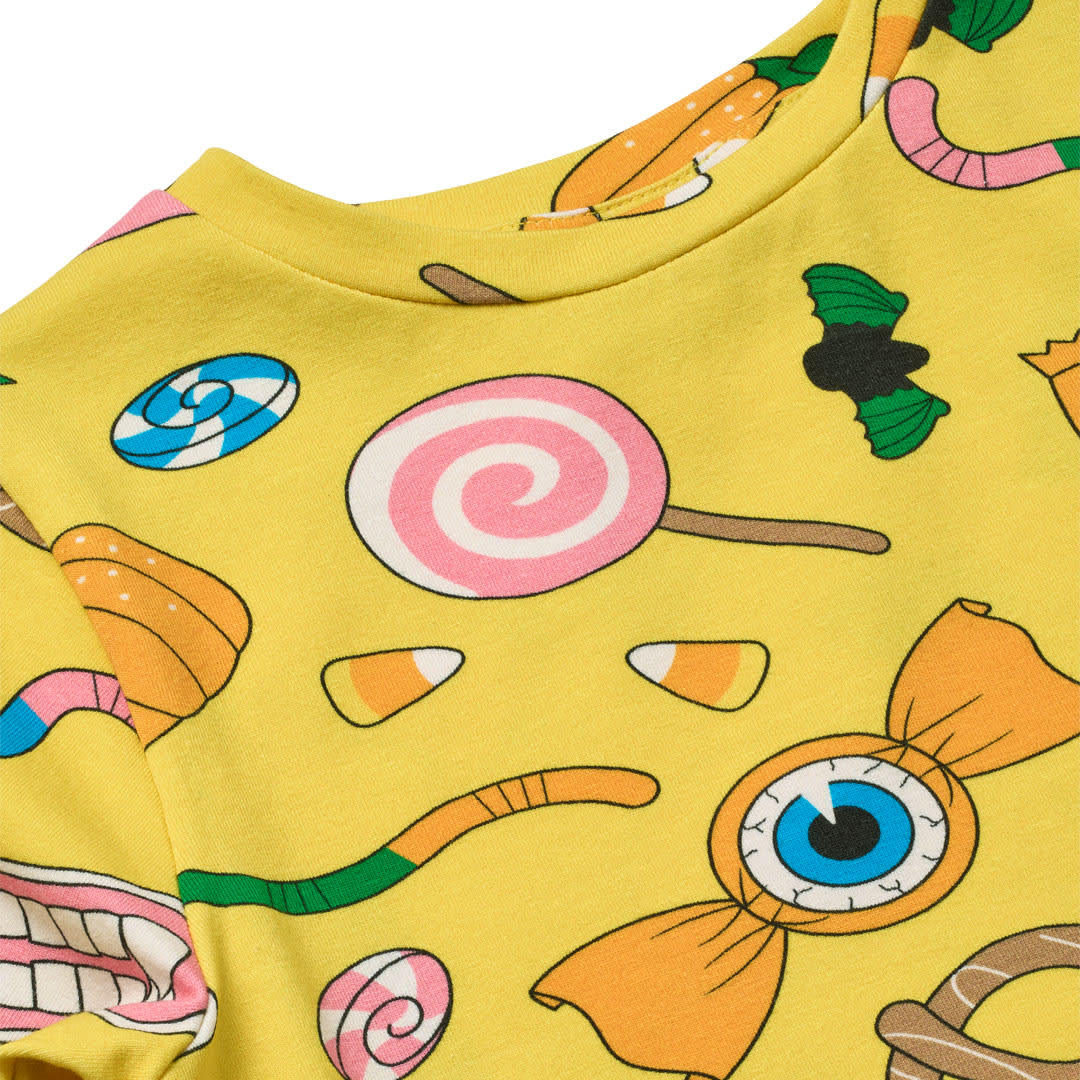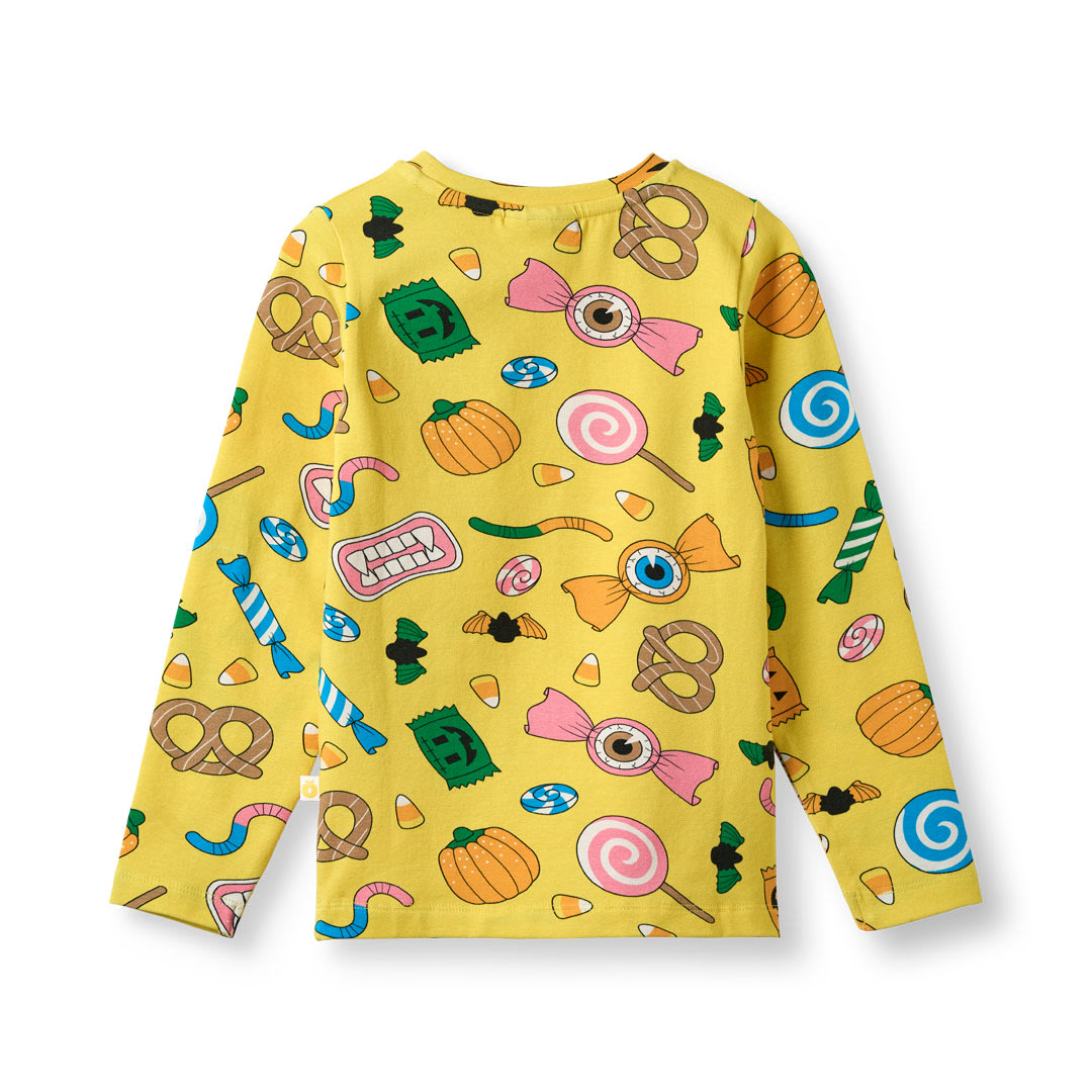 Long-sleeved blouse with Halloween candy, produced in an organic and stretchable cotton jersey. This blouse is OEKO-TEX Standard 100® certified, which means that the blouse has been produced and tested for harmful substances, so you can take care of your child's skin and health.