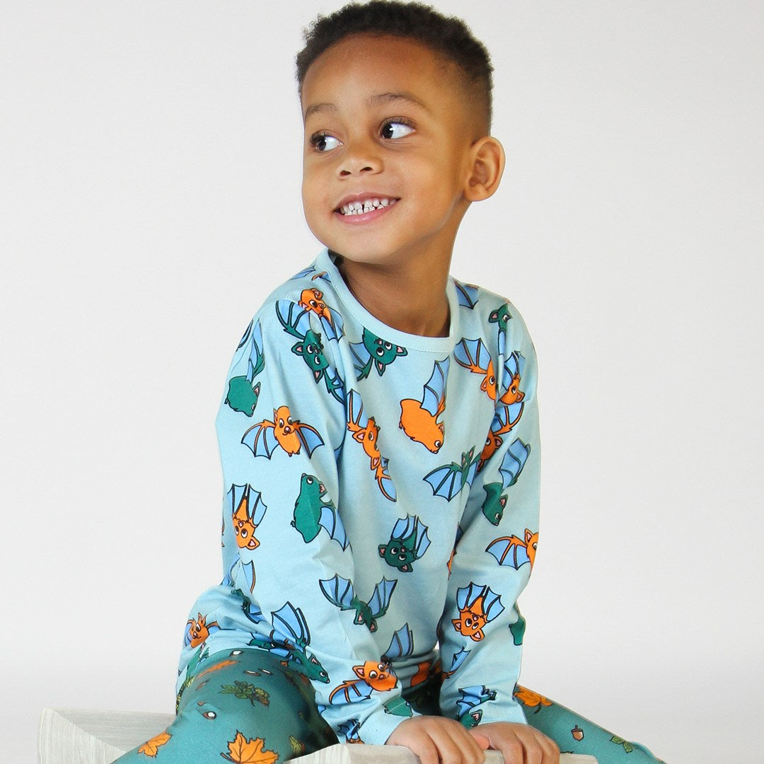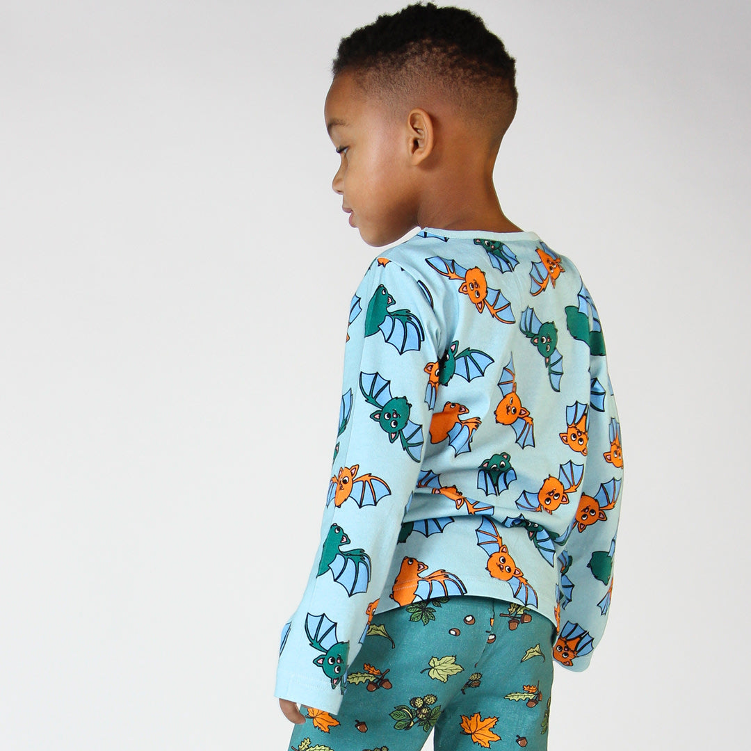 Bats are usually associated with creepiness, but we promise our bats are cute and well-behaved. Småfolk's prints are designed with a focus on happy colors, details and stories. Our long sleeve blouses are a great way to add personality to your child's wardrobe while keeping your child comfortable all day.