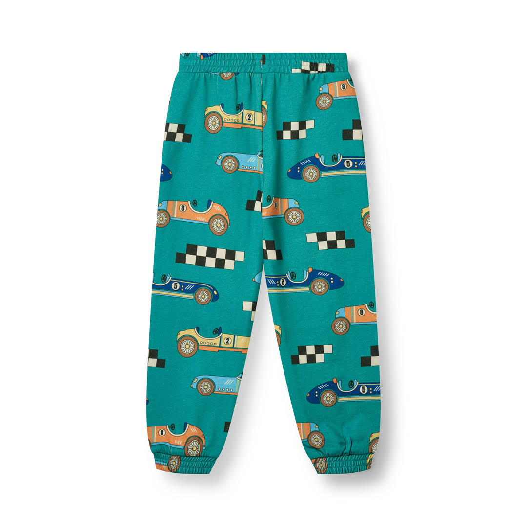 Pants in a unbrushed sweat material with race cars, produced in 100% organic cotton. These trousers are OEKO-TEX Standard 100® certified, which means that the trousers have been produced and tested for harmful substances, so you can take care of your child's skin and health.