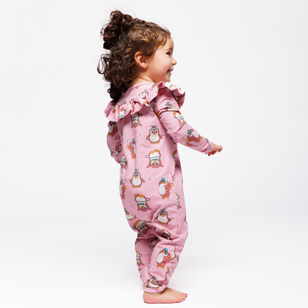 Let playful circus penguins add a touch of whimsy and charm to your little one's outfit. Småfolk's prints are hand drawn and designed with a focus on happy colors, details and stories. Our baby suits are a great way to add personality to your child's wardrobe while keeping your child comfortable all day.
