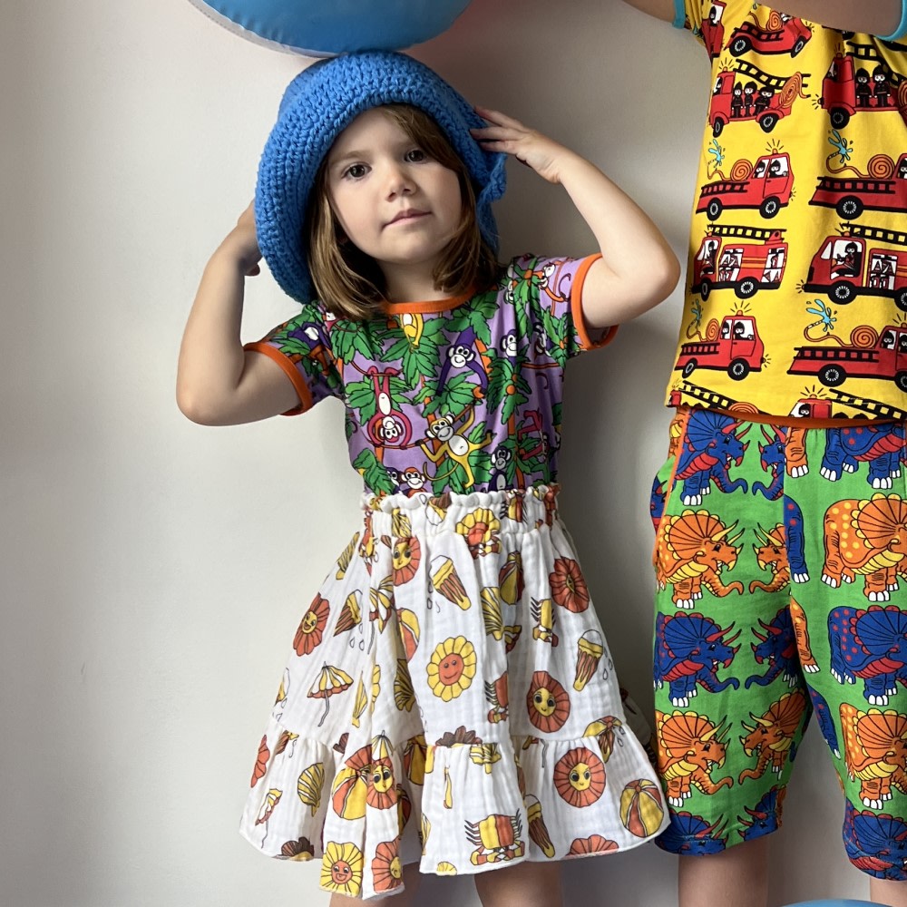 Beautiful skirt with summer print. The skirt is designed with a skirt that gives freedom of movement and a sweet look. The skirt has practical and comfortable elastic at the waist. The skirt is in nice bright colors in which your child can play, grow and explore their imaginations, this at the same time as the child can move freely. Småfolk's skirts are ideal for both kindergarten, school and finer events.