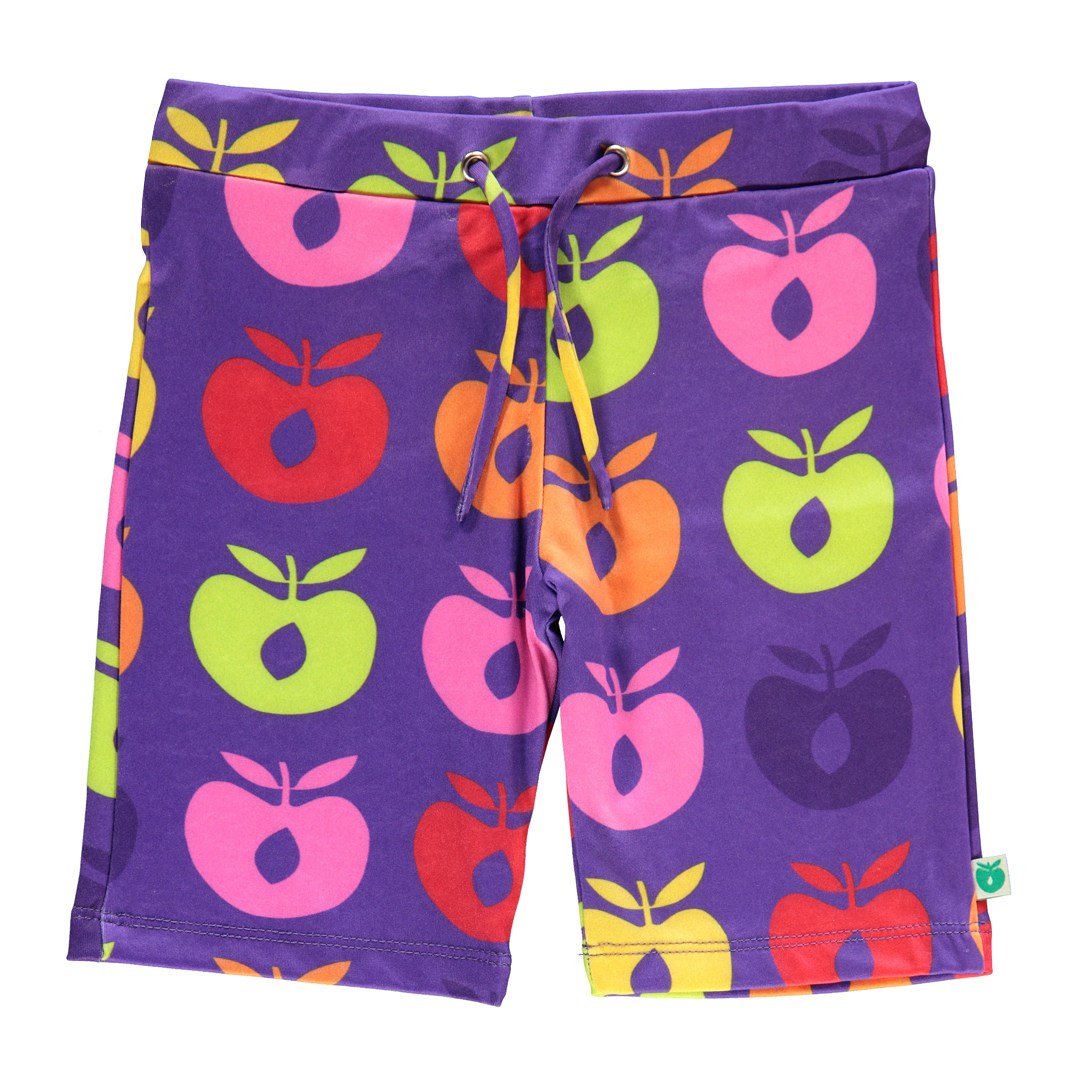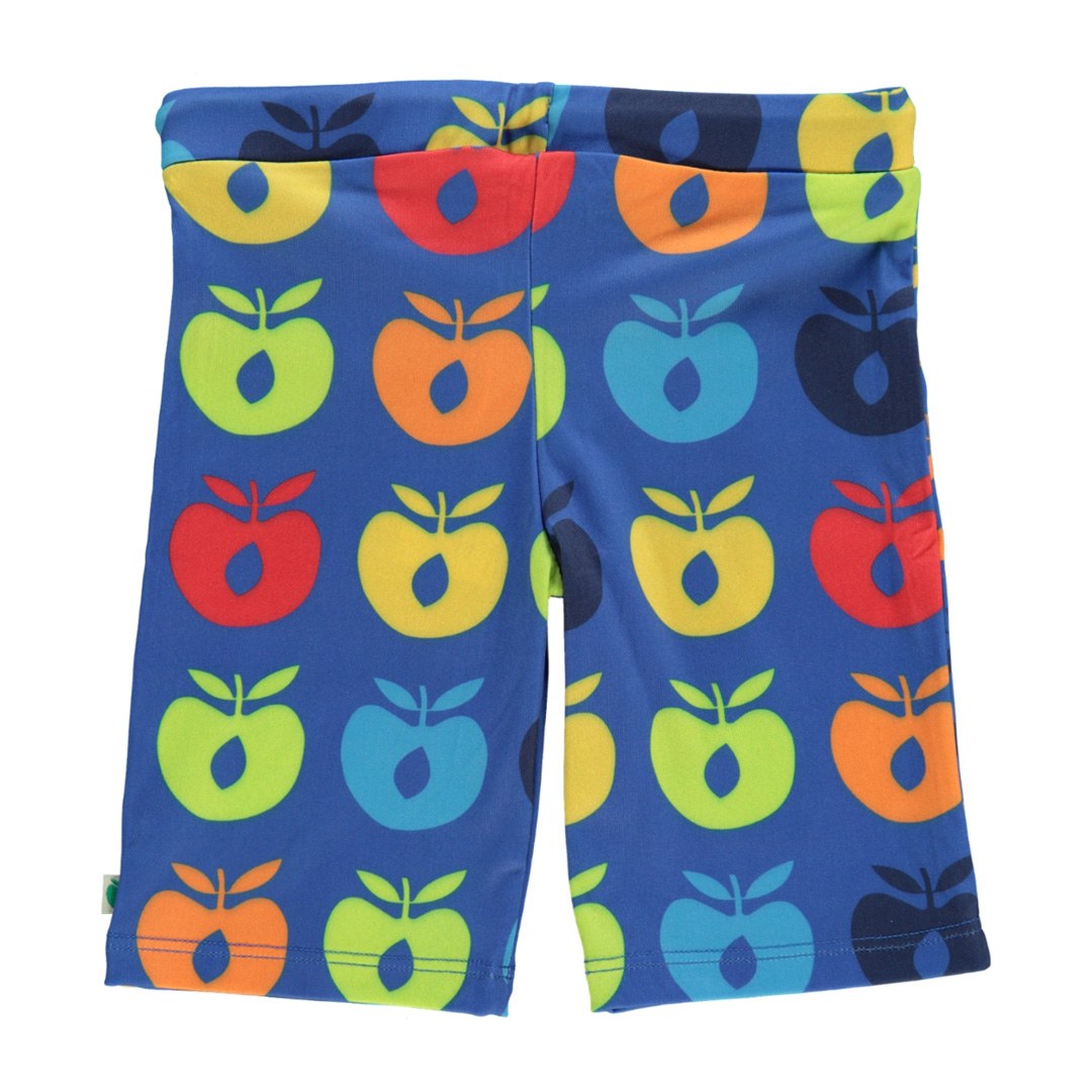 Swimming trunks with apple print, produced in stretchable and durable polyester. Småfolk's swimwear protects your child's skin with the UPF50+ UV factor knitted into the fabric.
